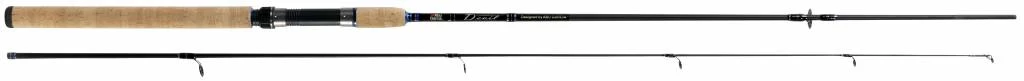 Abu Garcia Devil spinhengel heeft een topkwaliteit tegen een zeer gunstige prijs. De 8 verschillende en 2-delige modellen hengels zijn ideaal voor de startende hengelsporter. De reeks heavy versies zijn ideaal om met grotere kunstazen van 40-80 gr. te sportvissen. De reeks bestaat verder ook uit een paar hengels. Opnieuw 2-delige versies die respectievelijk 2m en 2,4m meten en die u in staat stellen om gewichten van 5-20gr en 10-30 gr. te werpen. Abu Garcia Devil ultra lichte spinhengel heeft een topkwaliteit tegen een zeer gunstige prijs. Abu Garcia Devil spinhengels zijn vervaardigd uit composite carbon waardoor deze licht en sterk zijn, De TS kwaliteits geleideogen zijn geschikt voor gevlochten lijn en een kurken handgreep zorgt voor de nodige grip.