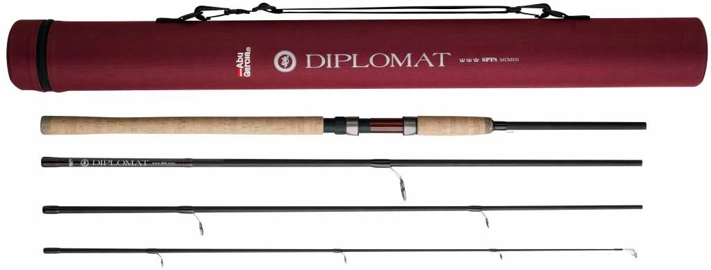 Abu Garcia Diplomat spinhengel is een speciaal ontworpen reishengel voor de hengelsporters die de hele wereld afreizen om vangst van het leven binnen te halen. Abu Garcia Diplomat spinhengel wordt gekenmerkt door een hoge kwaliteit 24 ton grafieten constructie, houten reel seat, een kurken handgreep en SS304 ogen. Abu Garcia Diplomat is een vierdelige reishengel die makkelijk mee te nemen is en wordt geleverd in een beschermende Cordura tube.