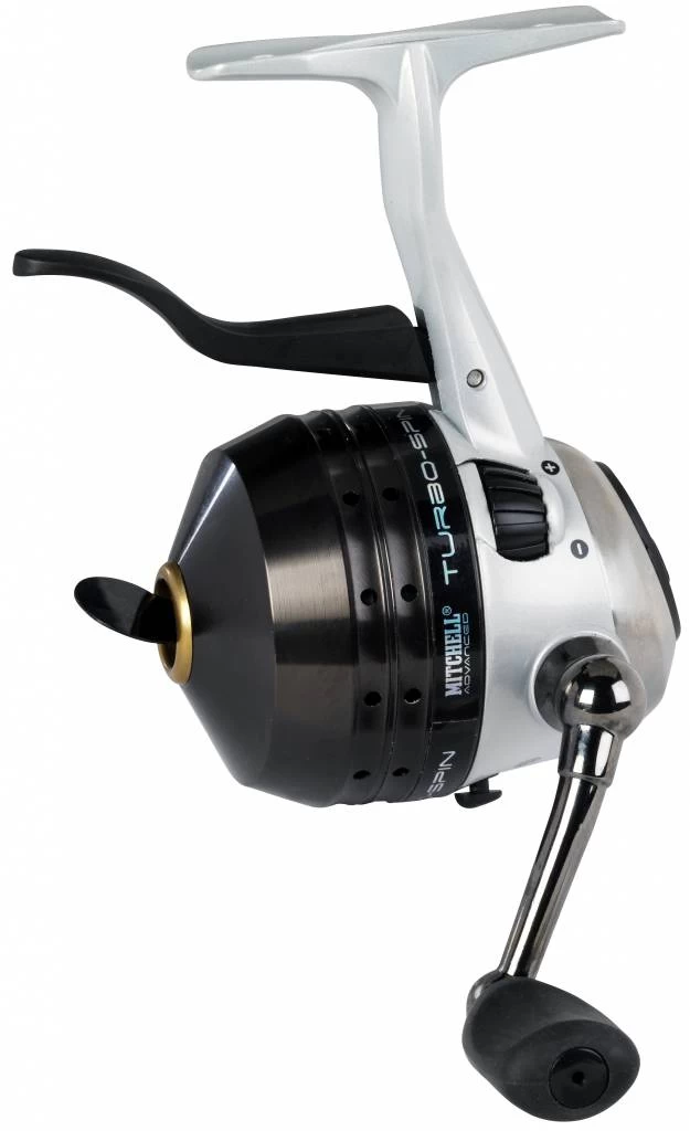 Mitchell Turbo Spin is een spincasting vismolen die er een beetje apart uitziet. Deze spincasting molen is voorzien van een hendel die je kunt indrukken. Deze klikt u in bij het inwerpen en de vislijn komt vrij. De hendel houdt u vast tot het punt waarop u wilt werpen. Het bijzondere aan de Mitchell Turbo Spin is het lijnsysteem. Wanneer u een aanbeet voelt dan kunt u de vislijn volledig vrijgeven door middel van één vingerbeweging en de vis ondervindt geen enkele weerstand.
