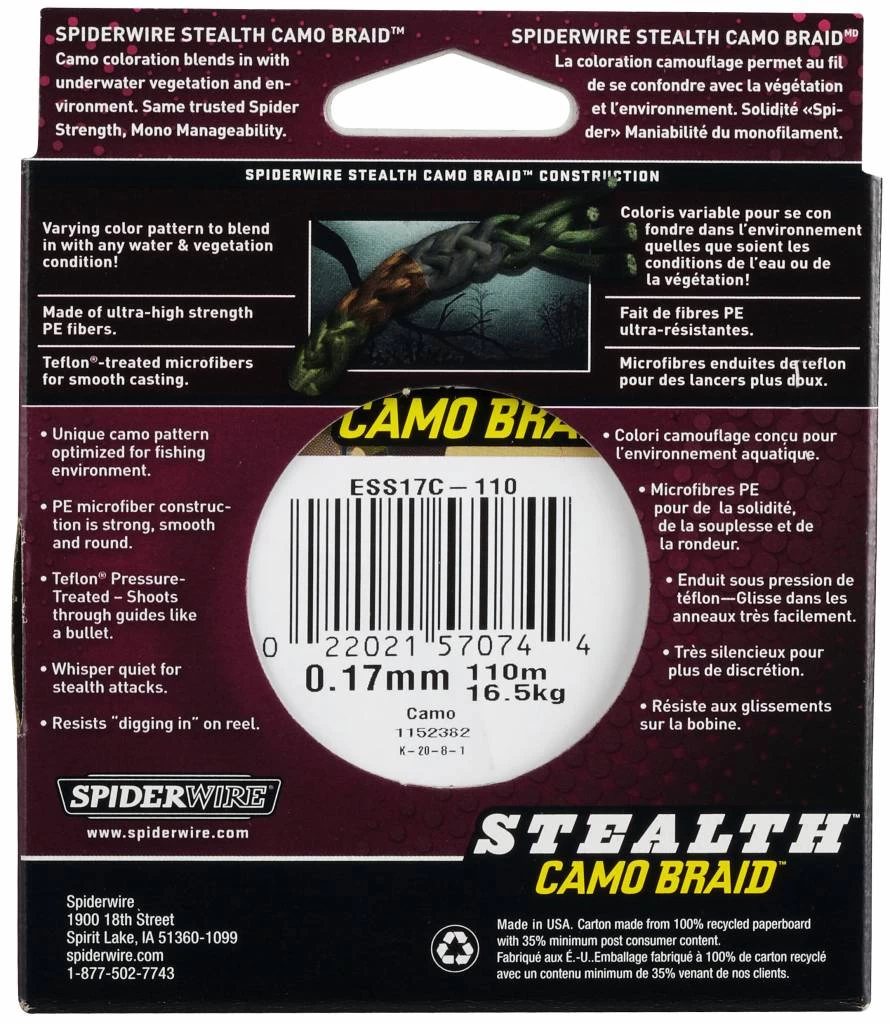 De Spiderwire Stealth Camo gevlochten lijn is onder druk gecoat met Teflon en samen met de Colour lock technology, blijft de lijn zijn camouflerende kleur behouden!Â