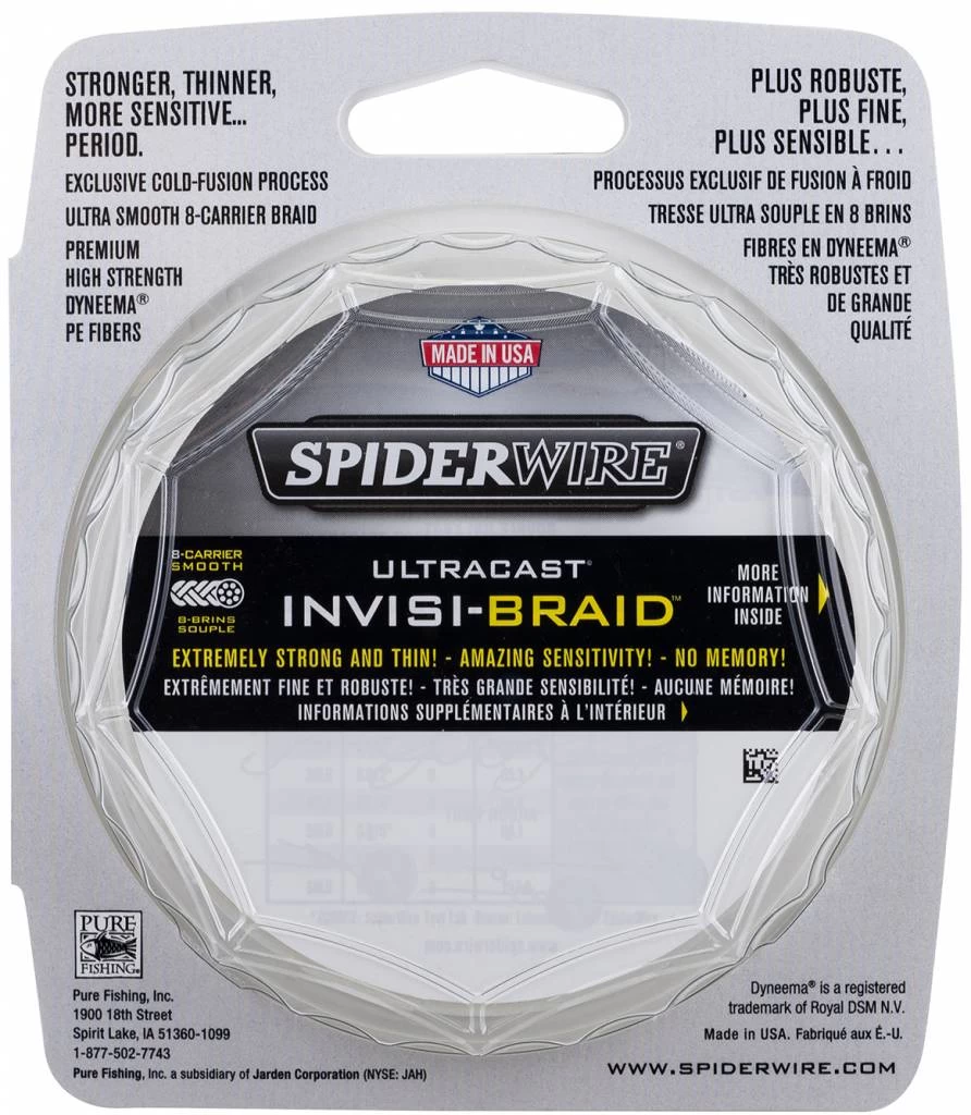 Spiderwire Ultracast 8 Carrier Braid Dyneema gevlochten vislijn is vernieuwd. De 8 kernen gevlochten Dyneema vezels vormen een ronde Ultracast lijn. Hierdoor wordt de vislijn krachtiger, soepeler, betrouwbaarder en duurzamer. Deze gevlochten lijn is boven water prima te zien maar is onder water nagenoeg onzichtbaar.