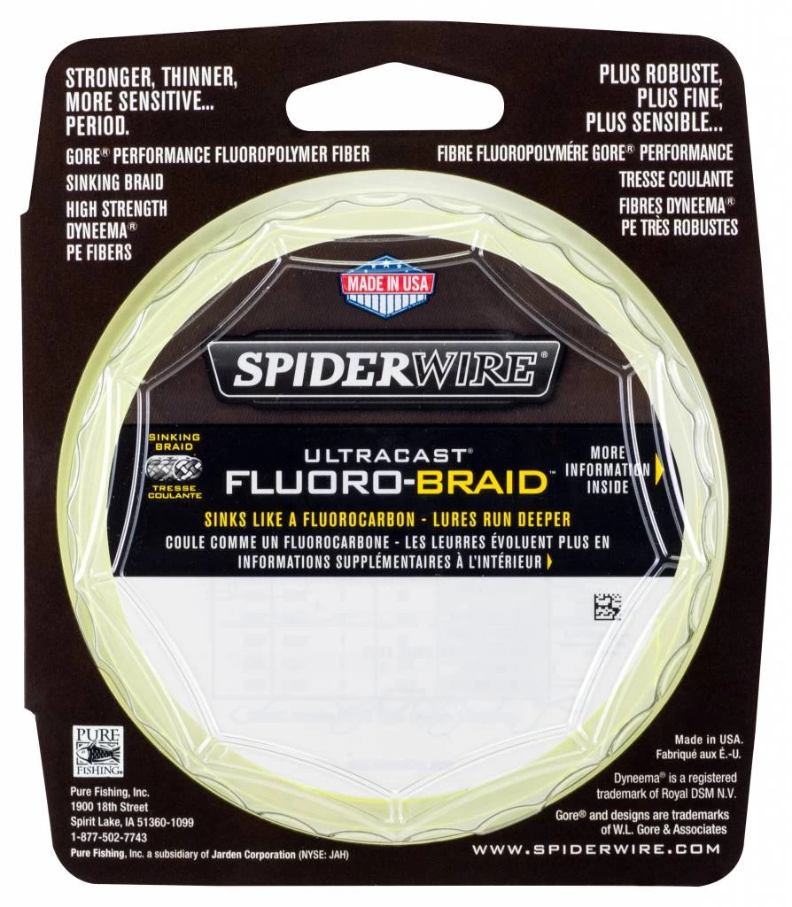 Spiderwire Ultracast Fluorobraid Yellow gevlochten lijn is gemaakt met Gore Performance vezels en Dyneema vezels. Deze combinatie creërt een unieke gevlochten vislijn die zich uitstekend laat werpen en kent een hoog massa dichtheid. Deze gevlochten lijn zinkt als fluorocarbon maar verliest geen trekkracht.